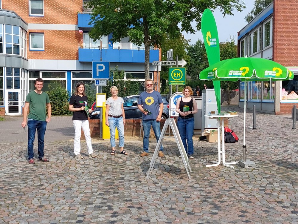Neben der Kommunalwahl am 12. September hatten die Grünen heute auch die Bundestagswahl am 26.9. im Fokus. Die bündnisgrüne Bundestagskandidatin Sylvia Holste-Hagen aus Twistringen, die im Wahlkreis Diepholz-Nienburg I antritt, war mit am Wahlstand der Grünen und stand den Bassumerinnen und Bassumern Rede und Antwort. „Wir stehen mit dem Klimawandel und dem Artensterben vor den größten Herausforderungen unserer Zeit“, so Sylvia Holste-Hagen. Für sie ist klar: „Nach der Bundestagswahl brauchen wir ein wirksames Klimaschutz-Sofortprogramm, um unsere Welt für unsere Kinder und Enkel zu erhalten.“