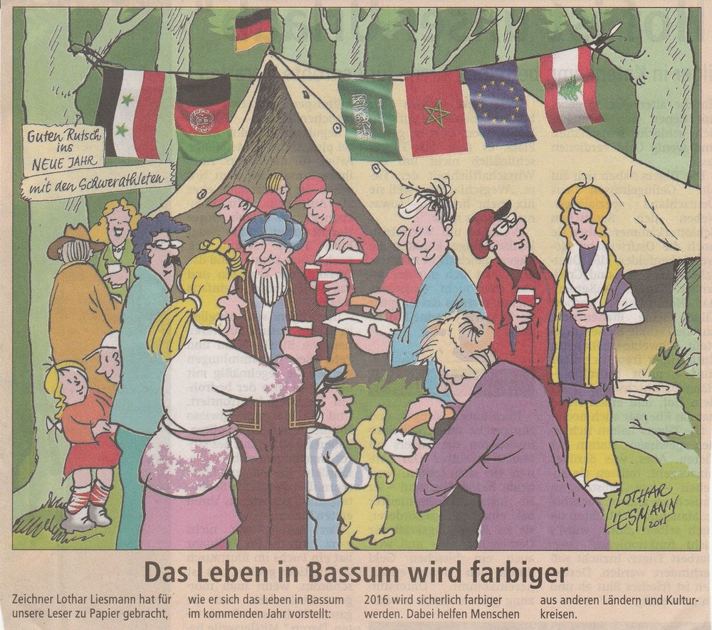 Denn auch Bassum wird farbiger, wie es der Zeichner Lothar Liesmann zur Jahreswende in der Kreiszeitung bereits sehr schön karikierte.