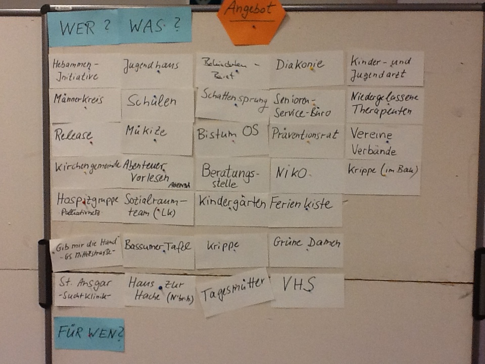 Im Rahmen einer grundlegenden Analyse und einer Bedarfs- und Wunschabfrage möchten wir ein Fundament für die weitere Arbeit an einem Familienzentrum (das für uns kein räumlicher Komplex bzw. Gebäude sein muss) erstellen, hierzu gab es im Februar ein Impulstreffen, dass nun seine Fortsetzung fand.
