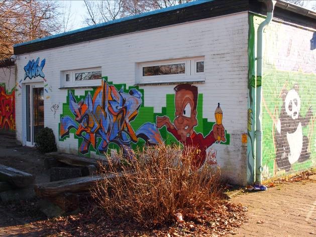 Unser Vorschlag, eine Symbiose zwischen Jugendhaus und öffentlicher Freizeitfläche am Schulzentrum. Die Fotos zeigen eine entsprechende Umsetzung als Beispiel!