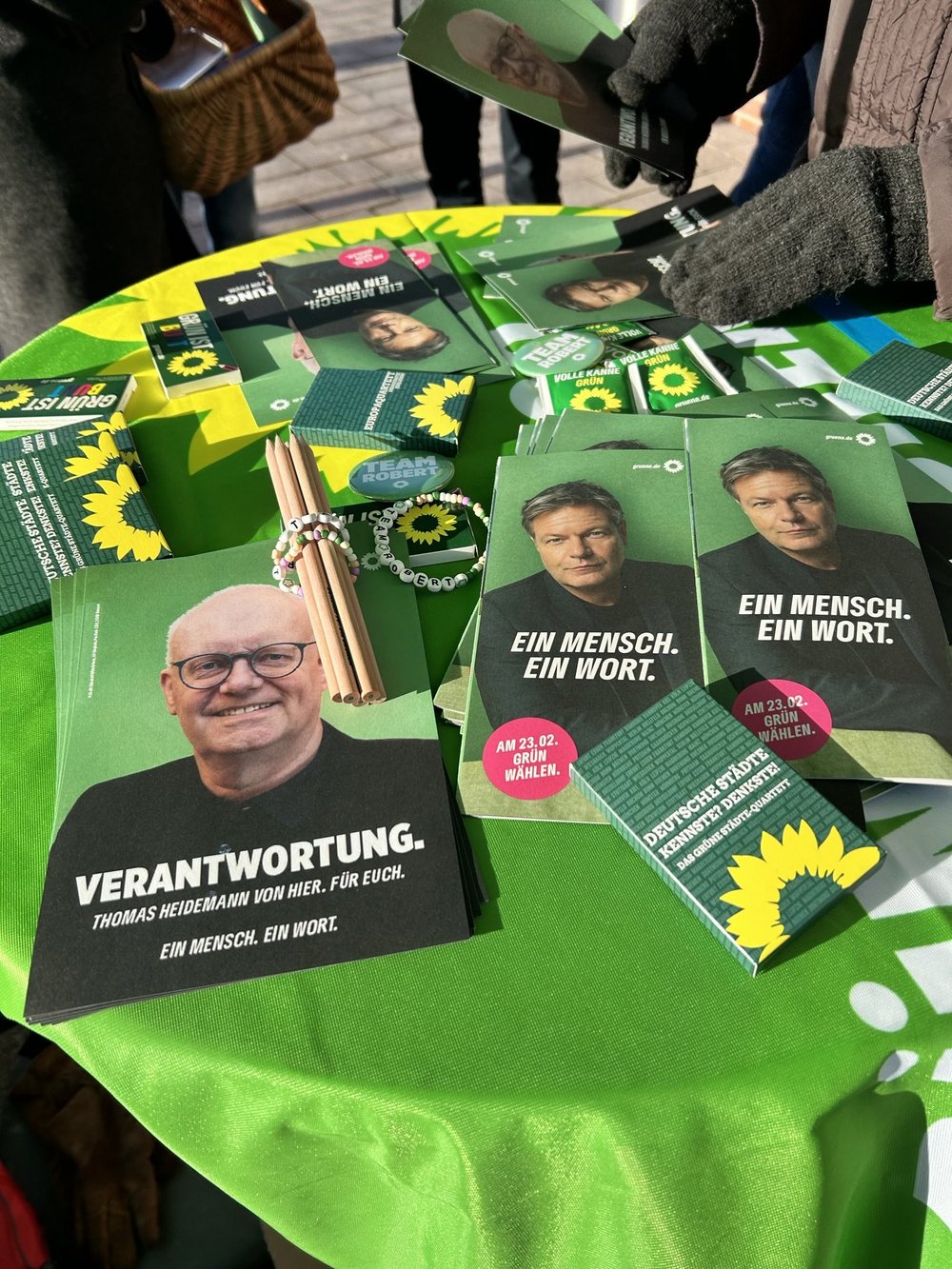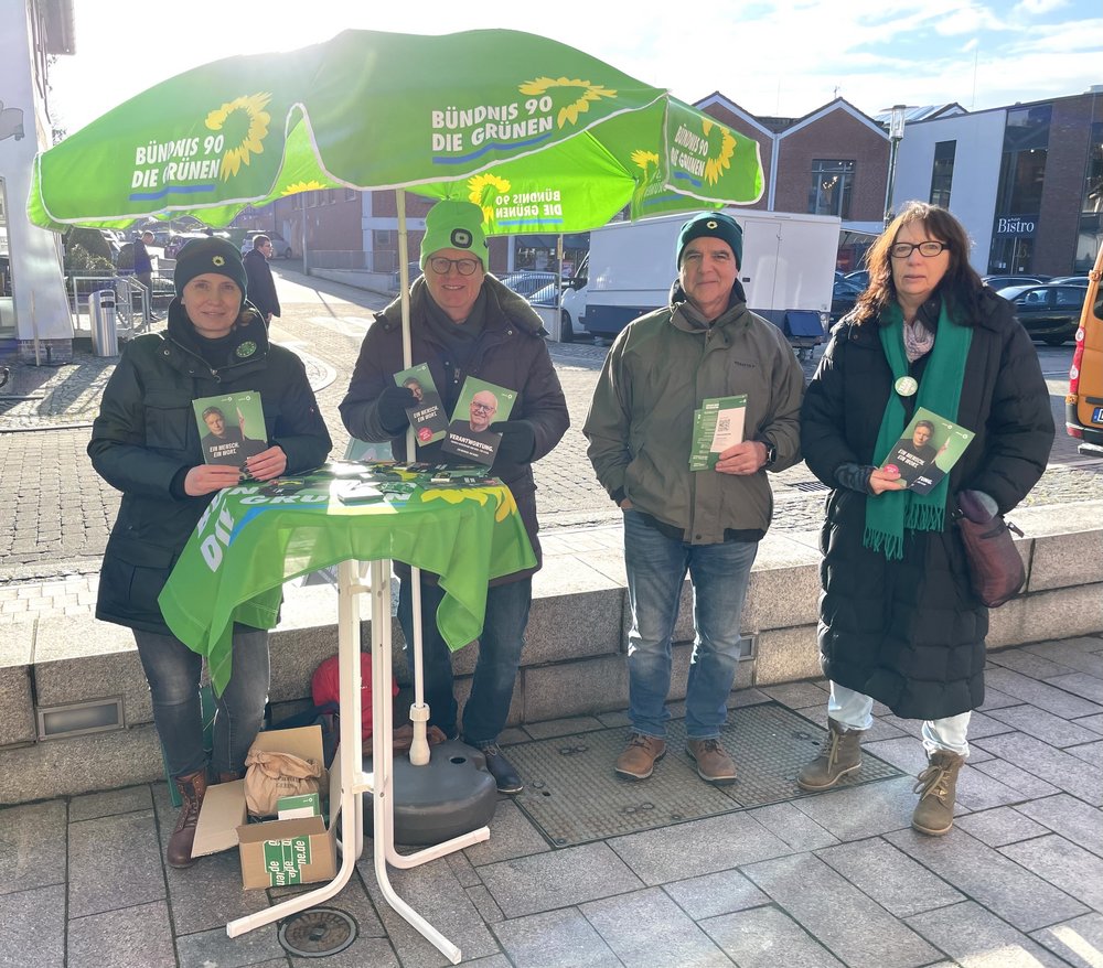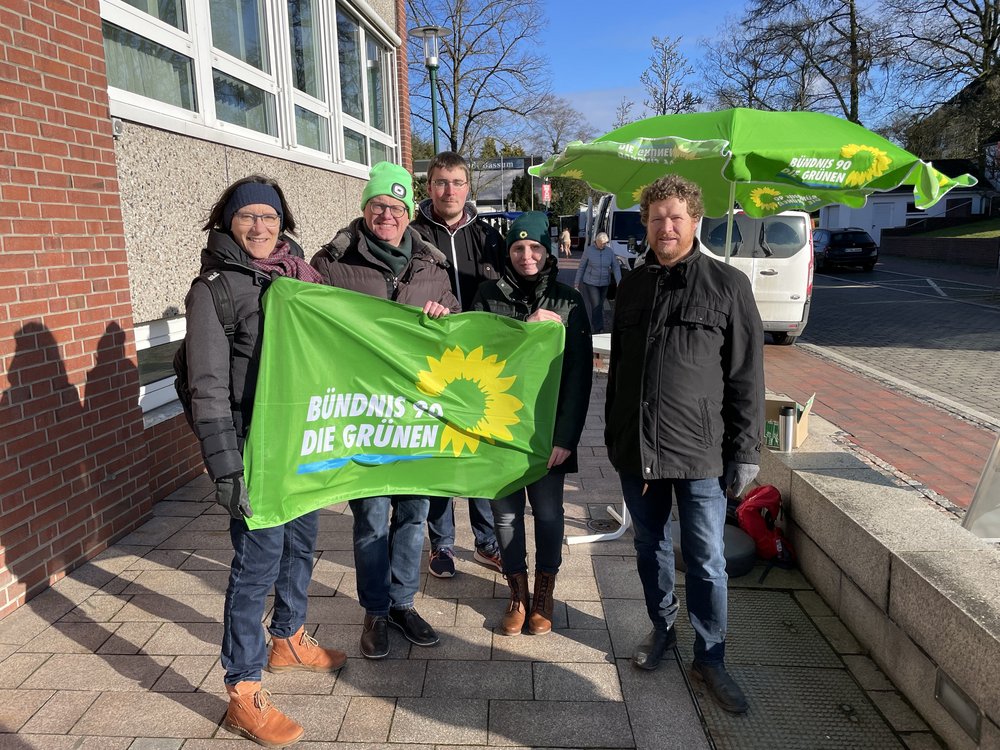 Wahlkampf der Bassumer Grünen zusammen mit Thomas Heidemann bei strahlendem Winterwetter und mit guten Gesprächen am gestrigen Freitag vor dem Rathaus.
