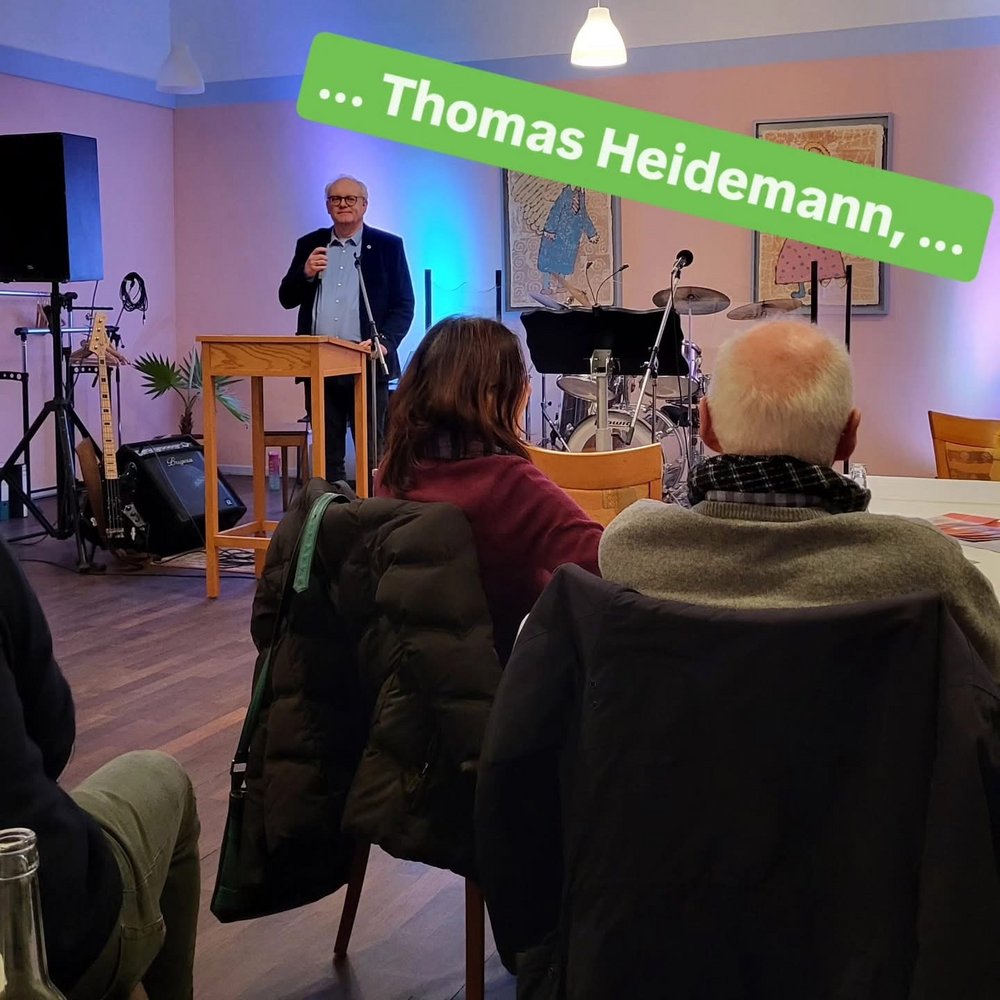 Nach dieser informativen und unterhaltsamen Einleitung des Abends begann der politische Teil des Abends damit, dass Thomas Heidemann, der Kandidat der Grünen des Wahlkreises Diepholz / Nienburg I sich vorstellte und über seine Motivation als Kandidat für den Bundestag zu kandidieren berichtete.