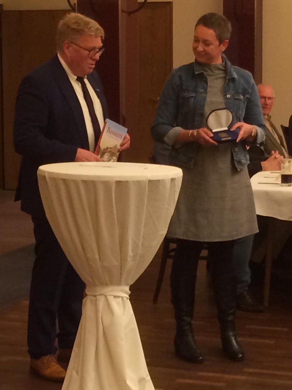 Henrike Gerling-Jacobs übernahm 2016 den Vorsitz des Vereins des Mütter-Kinder-Zentrums. „Ehrenamtliches Engagement bedeutet oft Teamarbeit. So steht Gerling-Jacobs aktiv mit vielen anderen zusammen“, stellte Bürgermeister Porsch das Wirken der Preisträgerin vor. Der dann die letzten Jahren den Weg des MüKiZe und Ihrer Vorsitzenden unter anderem als wesentlichen Bestandteil des Familienzentrums vorstellt. Dann überreichte er ihr die Medaille und dazu einen Bildband mit historischen Fotografien aus Bassum.