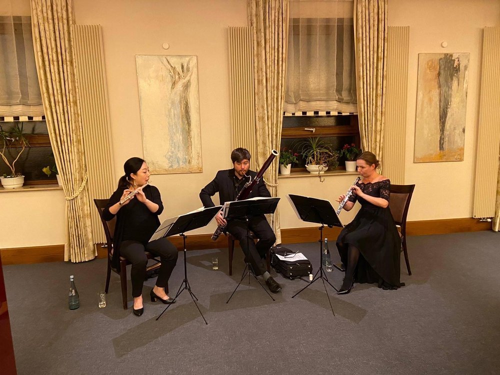 In der folgenden Pause sorgte das Trio Concertini aus Bassum mit Wan Cheng an der Querflöte, Anna Schulkowski an der Oboe und Anton Antonovych am Fagott für den musikalischen Rahmen. Sie spielten unter anderem den ersten Satz des Stückes „Trio Nr. 2“ von Guiseppe Maria Campini.